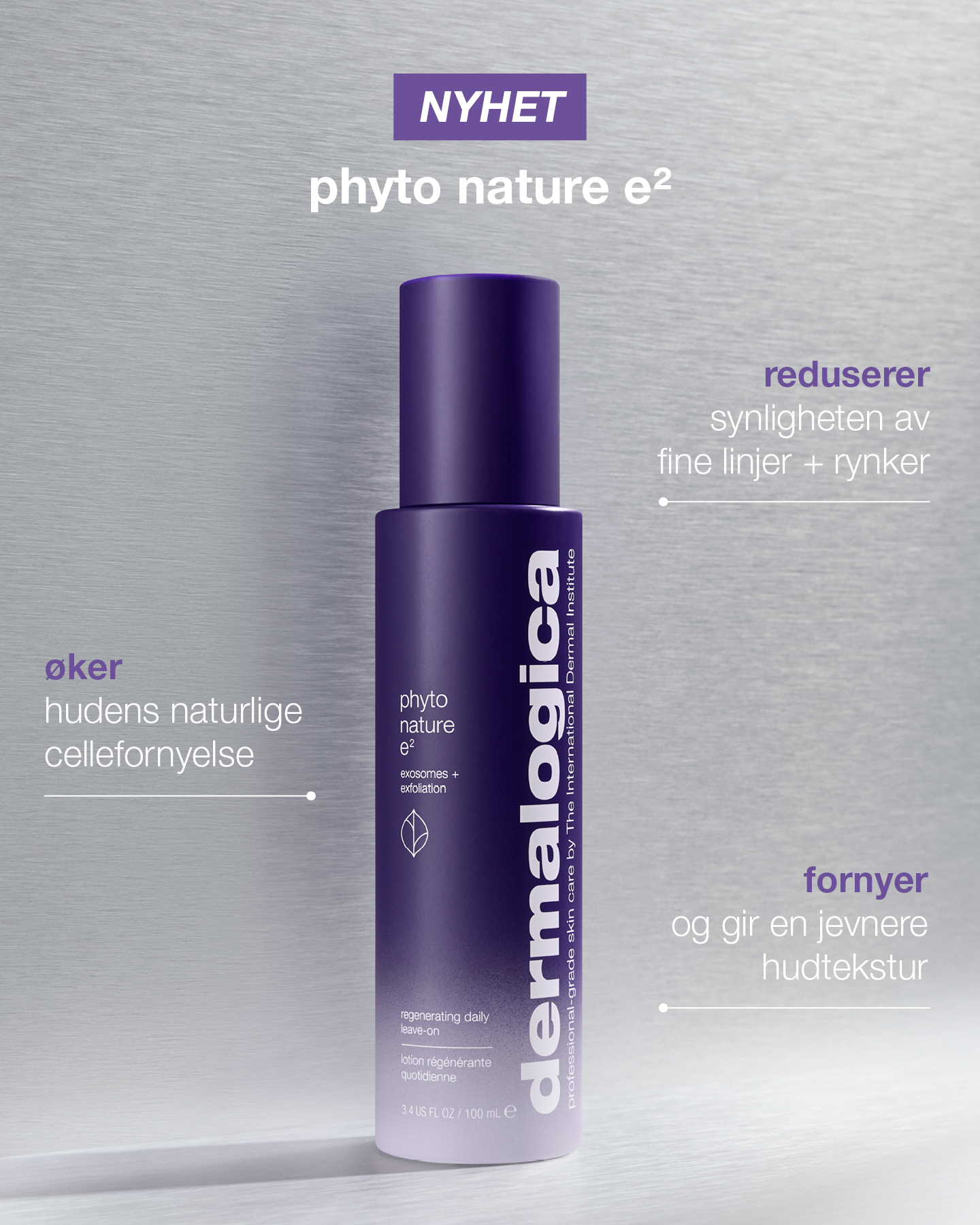 - Fornyende eksosom-blanding virker aktivt i flere lag av hudens overflate og reduserer synlig fine linjer og rynker